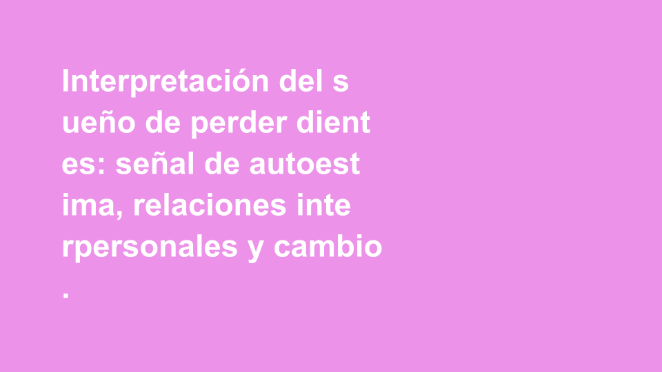 Etiquetas: sueños, interpretación de sueños, pérdida de dientes, autoestima, relaciones, cambios, ansiedad, subconsciente, significado cultural, transformación.